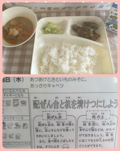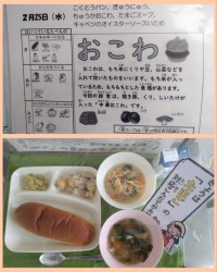 給食室前のサンプルのちくわの磯辺あげを見た1年生が