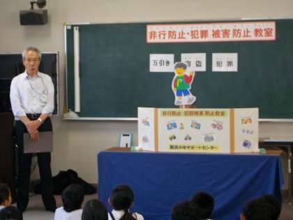 万引きなどの犯罪を、ペープサートを使った劇などでわかりやすく教えていただきました。