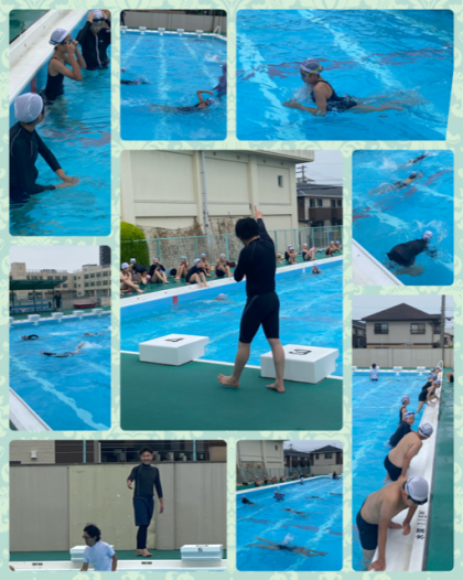 「次は、平泳ぎです!」の指示に、騒ぐ様子もなく、みんな楽しそうに水中での活動を楽しんでいます。安心して見ていられる6年生。さすがです。