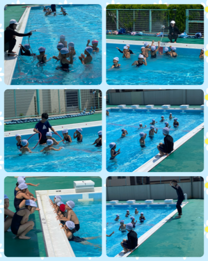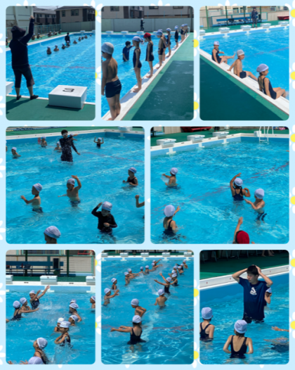 お天気のいい月曜日、今日はやっと1年生のプール水泳の様子を取材することができました。