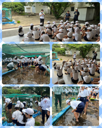 5年生の先生たちで鷹合田を耕し、雑草抜きをし、水をはり、準備されていました。