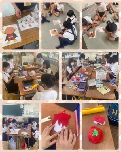 2枚目は、ゲームクラブとハンドメイドクラブの様子です。ゲームクラブは福笑いをしています。ハンドメイドクラブは、フェルトで何やら作っていますね〜
