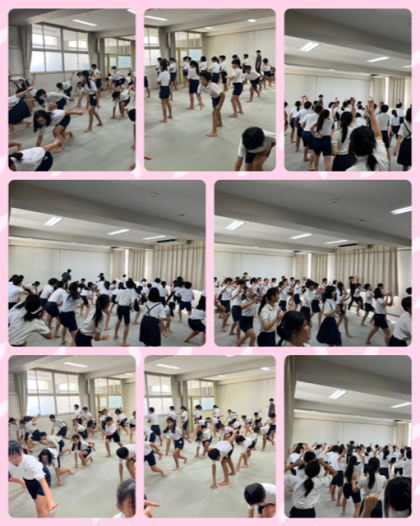 昨日から、6年生の団体演技の練習が始まりました。ソーラン節をメインに踊る6年生。昨日は、その前に踊るかっこいいダンスの動きを、笠井先生から指導されています。