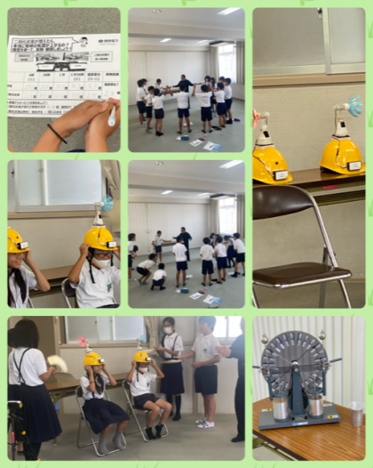 乾燥している時期に「パチ☆」と指先にあたってびっくりする静電気についても、体験します。静電気を起こす装置で静電気を発生させ、みんなで「せーのっ」で手をつなぐと、大盛り上がり(^O^)/