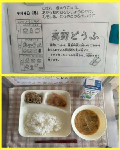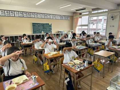 みんなお行儀よく、和やかな雰囲気で給食を食べていました。味について聞いてみると、高野豆腐の炒り煮は「伝統的な味がする!」、赤魚のおろし醤油掛けは「出汁がきいていて美味しい!」という声が聞かれました。さすが6年生、食リポもバッチリです。