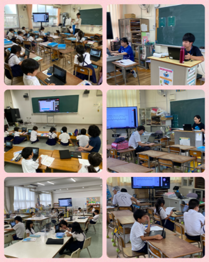 タブレットの画面を通して、国語や算数の問題が出されます。低学年は、手をあげるマークを押して、手をあげたり、高学年はチャットを使ったりと、タブレットを使いこなして授業がすすみます。いきいき活動参加の子どもたちも、別室で先生たちの看護のもと、タブレットを使っっています。