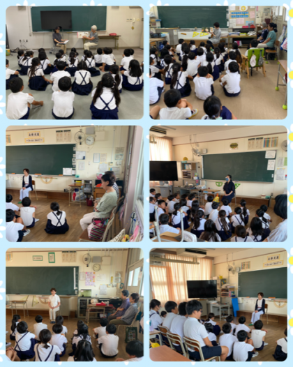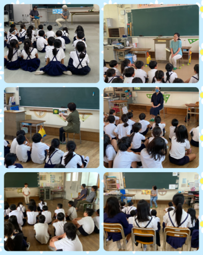 お話玉手箱のみなさんが来てくださって、2時間目は各学年1組、2時間目は2組さんに読み聞かせをしてくださっています。