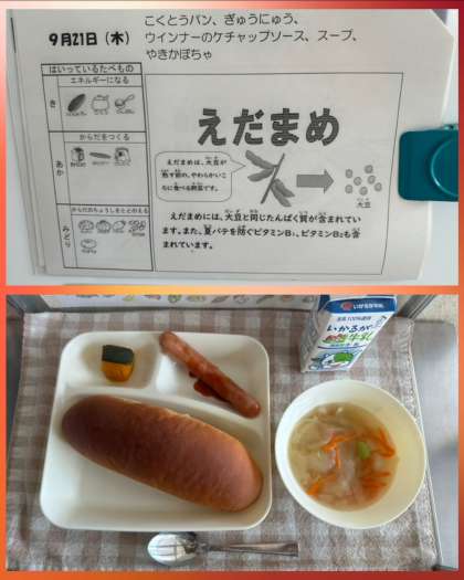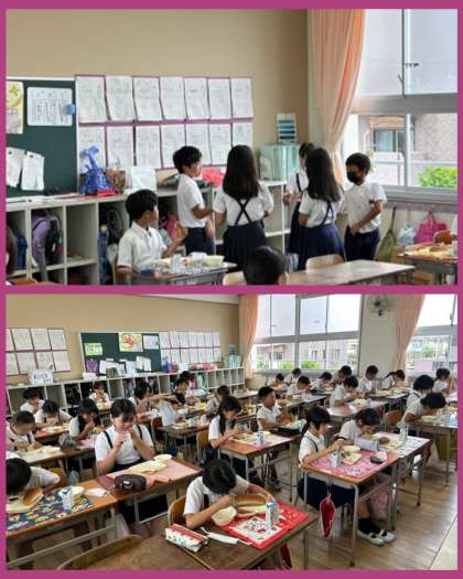 今日はパンにウインナーということで、、やっぱりいました!パンを割ってウインナーを挟んで、ホットドッグのようにして食べている児童がチラホラ・・・。それぞれの食べ方で楽しんでいました。