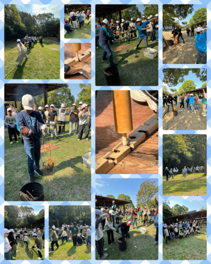声を掛け合って、スタート。2クラスとも、1度目のチャレンジは失敗。でも2クラスとも火起こし成功です!