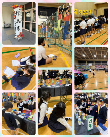14時から17時は、保護者の方に来ていただいてますが、午前中は、子どもたちの鑑賞の時間です。各学年が、目を輝かせて作品を見ています。