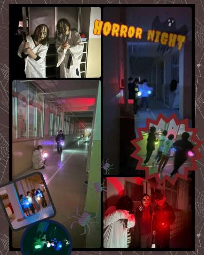 校舎の明かりも消え、頼りは提灯と非常灯だけ。