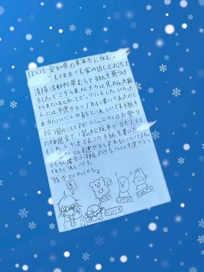 今回はなんと愛知県の東海市からのお返事でした。本当に遠くの地域まで届いていてびっく