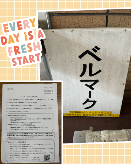 以前、ウェブベルマークについてもお知らせしましたが、実際のベルマークも随時集めてますので、お子さんに持たせてくだされば、玄関のベルマーク回収箱に入れて回収してくださいますので、ご協力お願いします!