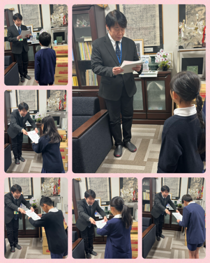 読書感想文コンクールで学校協議会賞 (^O^)/すごい!!を5人の子がもらい、それぞれ表彰状を校長先生よりいただきました。