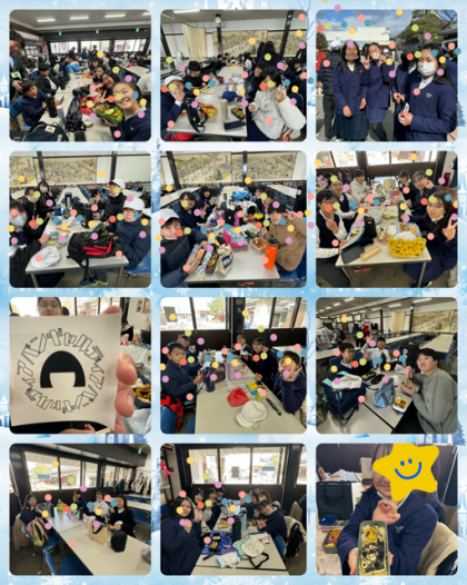 「今日の弁当は、おーうまそう❤」とにぎやかな会話ともぐもぐタイムです。
