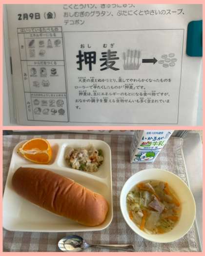 今日は押麦のグラタンでした。マカロニに比べて、もっちりねっとりした独特の食感です。チーズのおこげの部分が香ばしくて特に美味しかったです🧀