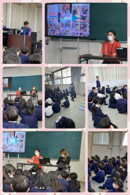 車いすやバギーに乗る友達のもつハンディキャップを、お母さんたちにお話していただき、理解を深め、やさしい心をもち仲間として成長してほしいと、2年生の担任の先生方が企画してくださいました。