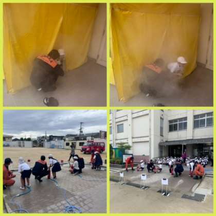 3年生と4年生は、水消火器体験と、煙テント体験を行いました。