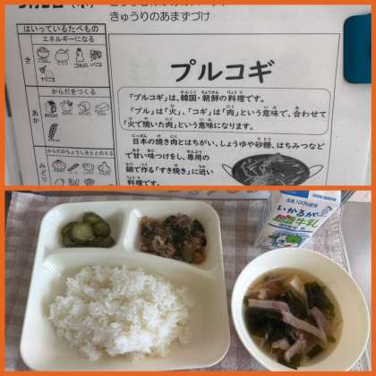今日は韓国料理のプルコギです。甘辛い味付けがご飯によく合います。