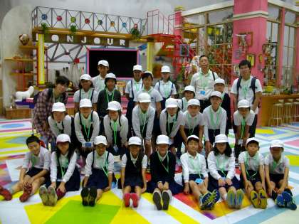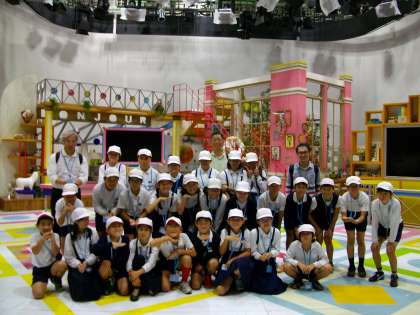 見学の後、番組のセットの前で学級ごとに写真を撮りました。