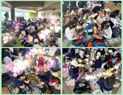 お家の人の作ってくれたお弁当は、子どもたちにとってご馳走のようです。みんな笑顔いっぱいで楽しそうに食べていました。