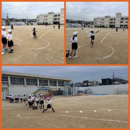 2年生もソフトボール投げを頑張っていました。日が陰ってきて、少し涼しくなってきました。