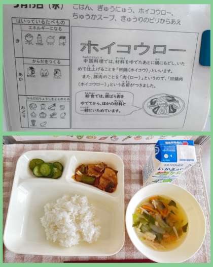 ホイコウローの甘めのタレを、ご飯に和えて食べている児童もいました。美味しいタレは、ご飯にかけたくなる気持ち分かります(笑)