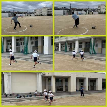 4年生は、50m走の計測とソフトボール投げを行いました。