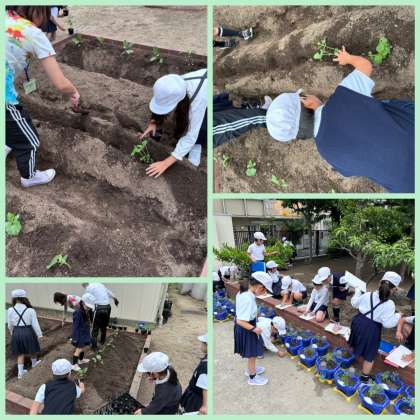 ナスに枝豆、オクラ、キュウリ、そして一人一鉢ずつミニトマトも育てています。夏には美味しい野菜がたくさん食べられそうですね^^