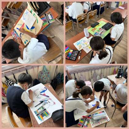 4年1組をのぞくと、鷹合フェスティバルにむけての準備が進められていました。