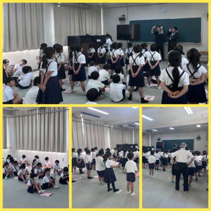 覗いてみると、1年生が学年で音楽の学習をしていました。