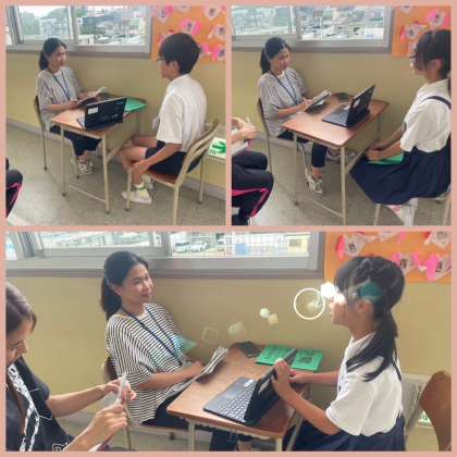 6年生が英語科の「Welcome to Japan.」の単元のスピーキングテストを行っていました。