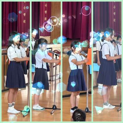 その後は、3年生と6年生の代表の児童が作文を読みました。1学期の思い出を、思ったことや感じたことを交えながら、とても上手に発表することができました。みんなからは大きな拍手が送られていました。