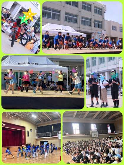 運動場のステージでは、司会進行役の先生方が「ドラ○もん」のキャラクターに扮装し、オリジナルを超える仕上がりで登場すると、会場内はざわめき「ドラ○もん誰やろ〜」との声が多く聞かれ、次第に歓声と笑顔であふれていました。