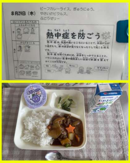 今日は二学期初めてのカレーライスが登場しました。シンプルなビーフカレーライスですが、ラッキーにんじんも入っていて、調理員さんたちの愛情がいっぱい詰まっています。