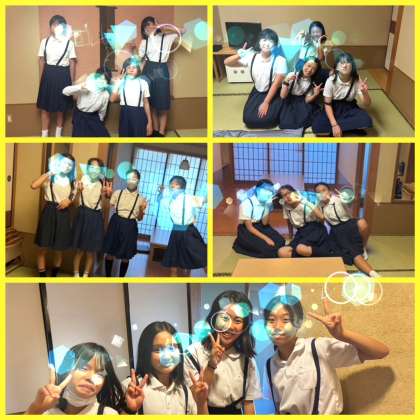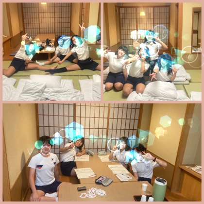空き時間にはしおりに今日の日記をつけたり、買ったお土産の記録をつけたりしながら部屋でくつろぎます。友だちと一緒でみんな楽しそうです。