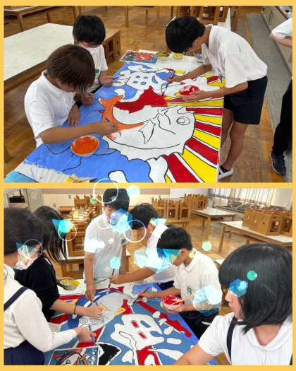 6年生といえば、運動会でのソーラン節。そこに向けての大漁旗作成でしょうか^^