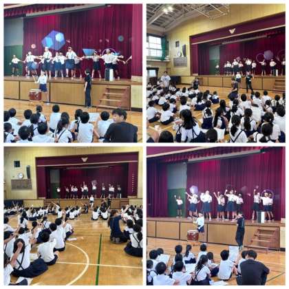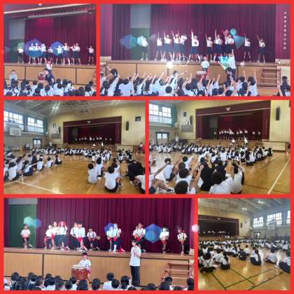 児童は応援団に合わせて、声を出したり手を叩いたり、一緒に盛り上げられるように練習しました。