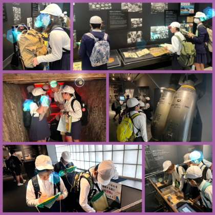 子どもたちは様々な展示や映像を見たり、防空壕の体験をしたりしました。今日感じた様々なことを大切にし、未来の平和をつくっていってほしいです。