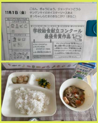 今日の献立は、学校給食献立コンクールの最優秀作品です。中央区の開平小学校の給食委員会が考えた作品だそうです。