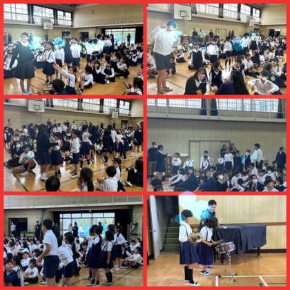 給食を食べた後は講堂に集まって閉会式を行いました。優勝、準優勝、3位までの班が発表されみんなから拍手をもらっていました。