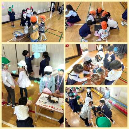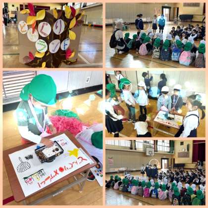 今日は校区内の保育園、保育所の年長さんを招いて、1年生がどんぐりランドを開催しました。