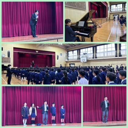 新しい年、新し学期を迎えまずは元気に校歌を歌いました。