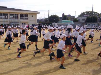 今日から2・3時間目の休み時間(業間)を活用して、全ての子どもたちが運動場をランニングします。