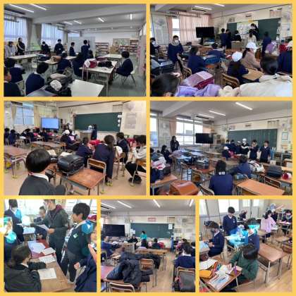各委員会ごとに、一年間の振り返りをしていました。がんばったことや楽しかったことなどを話し、6年生は5年生へ「がんばってください」と激励する場面もありました。