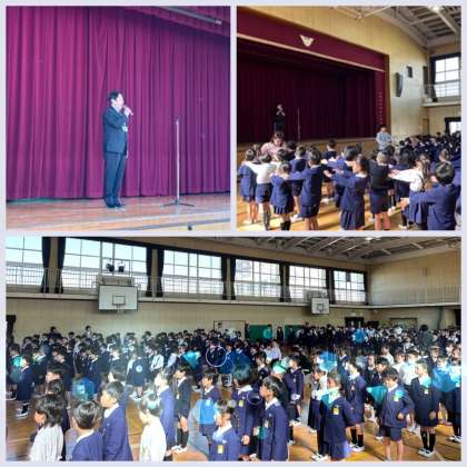 校長先生からは先日の交通安全指導にふれ、改めて交通安全の大切さについてのお話がありました。「車はブレーキをかけてもすぐには止まれない」「スマホを見ながら運転したりよそ見をしていたり危険な運転をする運転手もいる」など、まずは自分で事故に合わないように気を付けることが大切だというお話でした。