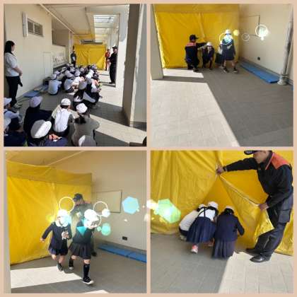 3・4年生は煙テント体験と、水消火器体験を行いました。