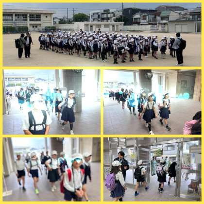 運動場に集合して朝の挨拶をすると、いつもの10倍くらい元気のよい挨拶が響き渡りました。子どもたち本当に楽しみにしていた様子が伝わってきました。
