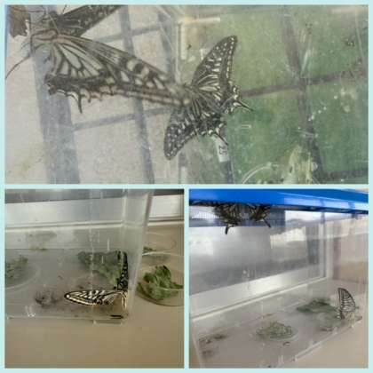 羽化した成虫は「元気でねー」とみんなで声をかけて放してあげています。自分たちが育てたアゲハチョウが飛び立つ時は、感慨深げでした。