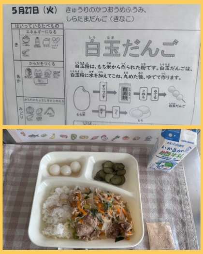 今日は白玉だんごです。きなこをふりかけて食べましたが、きなこの甘味と相性です。弾力もあってとても美味しかったです。ごちそうさまでした。